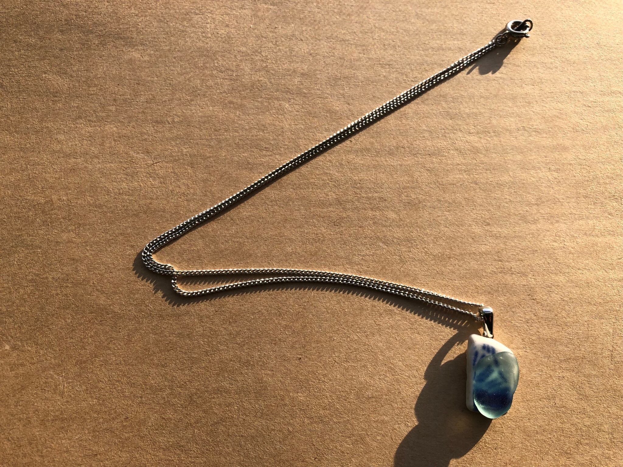 陶片とブルーシーグラスのネックレス