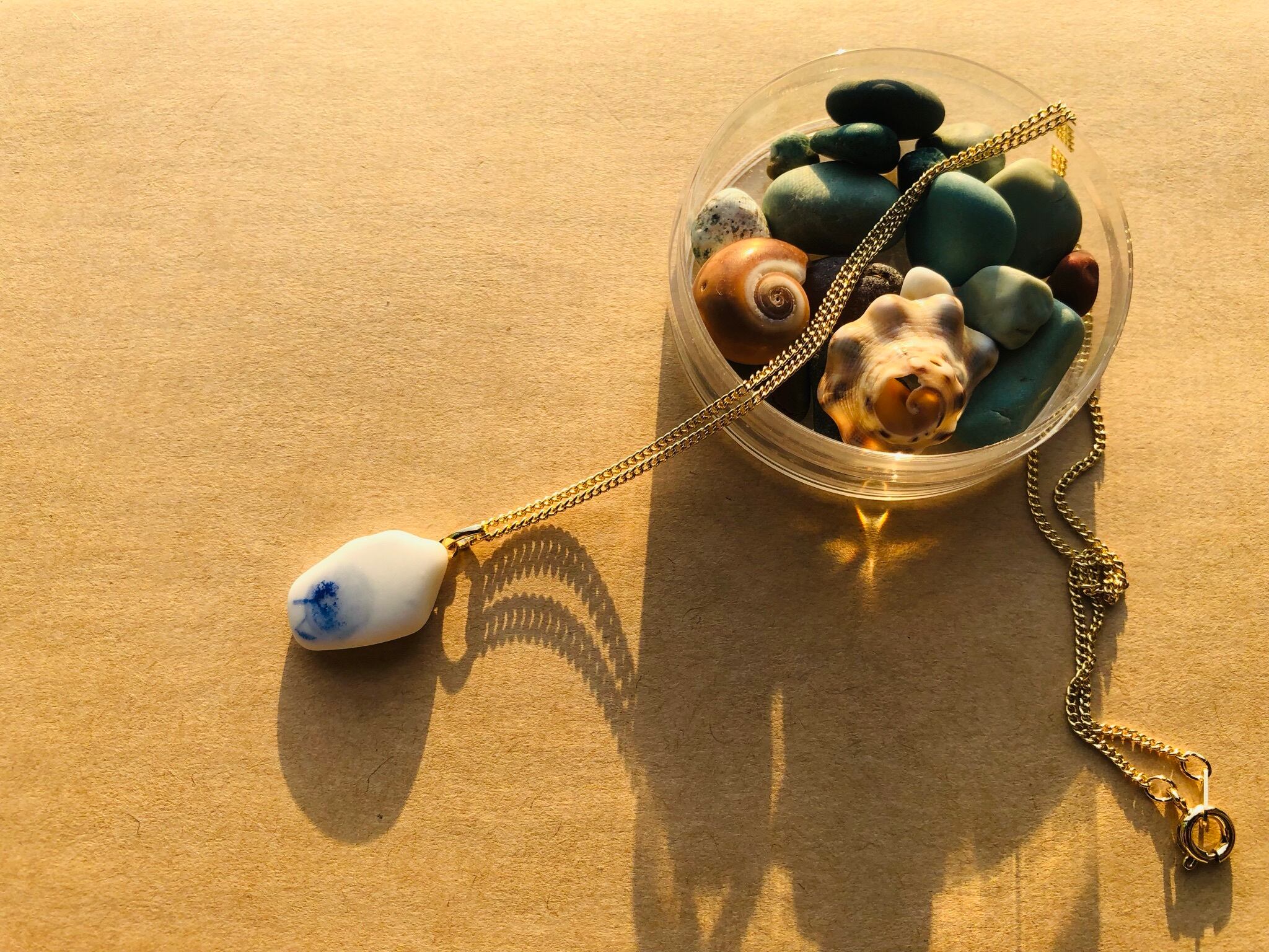 陶片ネックレス チェーン:ゴールド40㎝ *シーグラスや陶器は、加工をしていない自然のまま。すべて一点ものです。 131